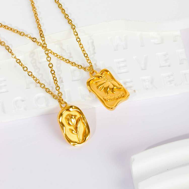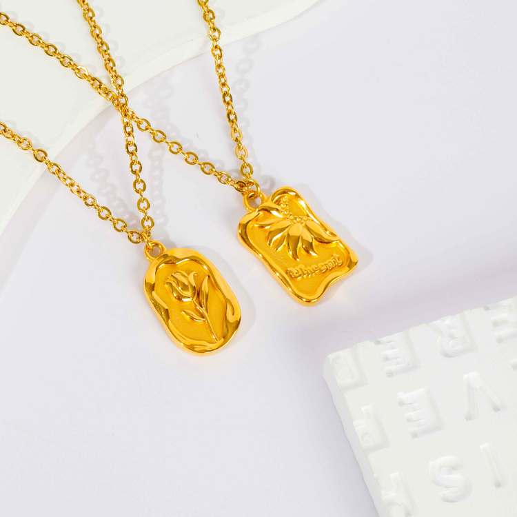 恒达鑫饰品配件不锈钢镀14K金玫瑰花铸造吊坠项链支持定制