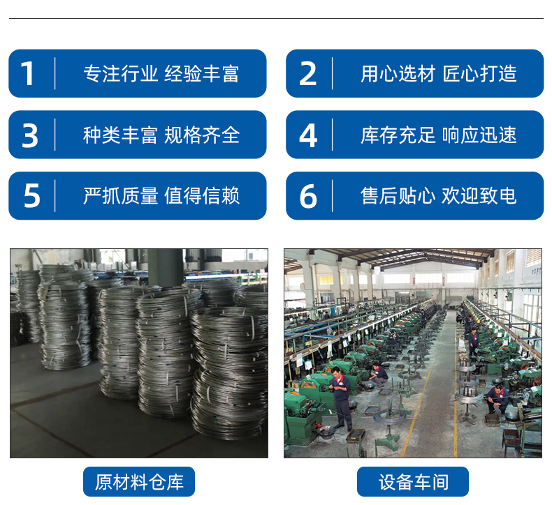 主要经营产品有 | 不锈钢、铜、铁、铝铆钉,实心、半空心、台阶铆钉,平头、圆头、沉头铆钉,六角螺栓、六角法兰螺栓、马车螺栓、活节螺栓、双头螺栓、机螺丝、紧定螺丝、六角木螺丝、自攻螺丝、焊接螺丝,油管、接头、非标车削件 | ||