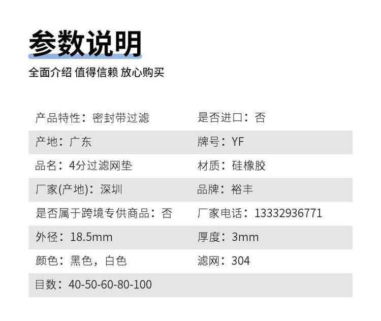 品名 | 4分过滤网垫 | ||
