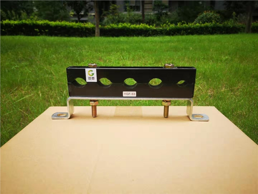 4. 预分支电缆固定支架型号:YGF-53,外形尺寸:240×55×25mm,螺杆中心距:145mm,适用电缆外径184-240mm2