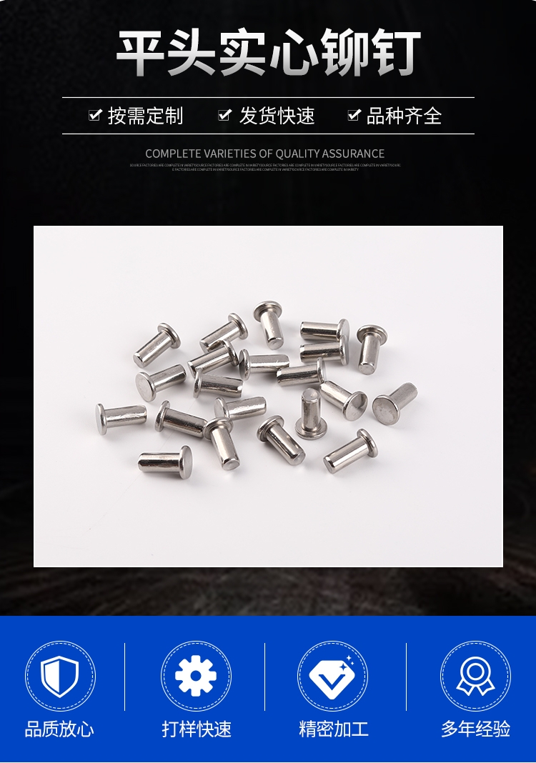 抛光处理 不锈钢实心铆钉 适用风电紧固件 平头不锈钢实心铆钉