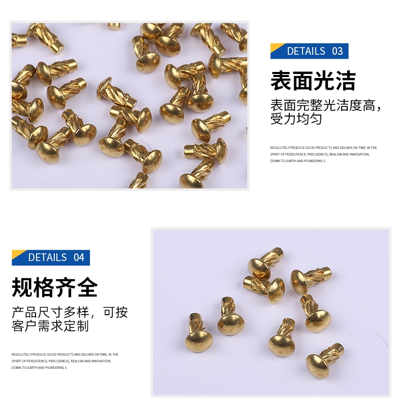 黄铜标牌铆钉 黄铜铆钉GB827滚花铭牌铆钉半圆头商标铆钉 铜帽钉