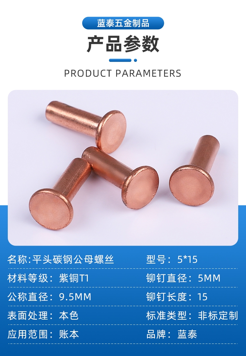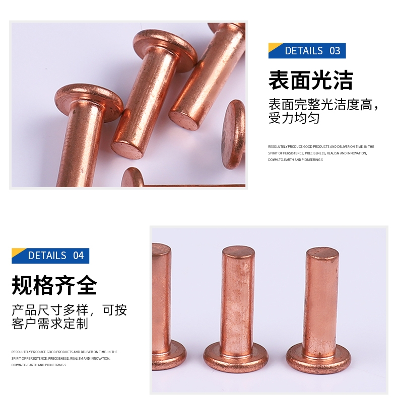 GB872扁平头实心紫铜铆钉 平头实心铆钉 导电触点铆钉 电器铆钉
