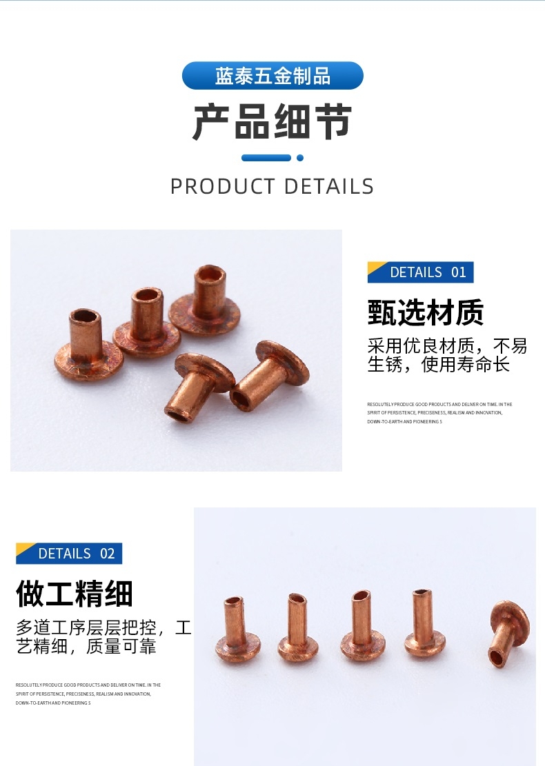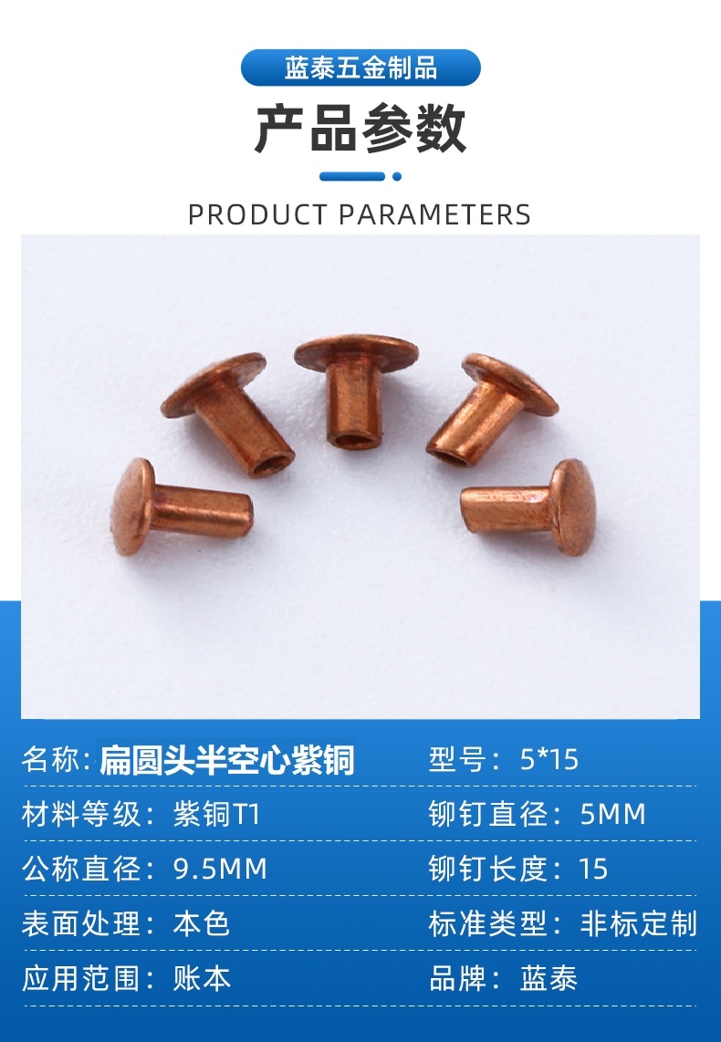 品名:? 扁圆头半空心紫铜铆钉