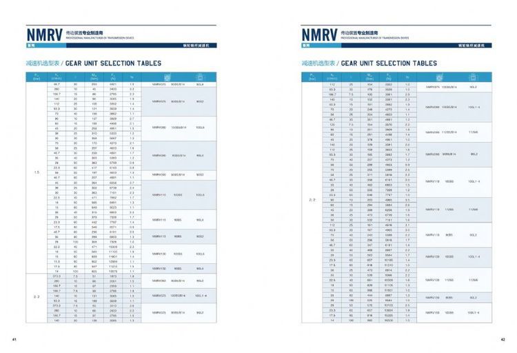 NMRV25、NMRV30、NMRV40、NMRV50、NMRV63、NMRV75、NMRV90、NMRV110、NMRV130、NMRV150 涡轮蜗杆减速机速比: (二)NMRV系列NMRV-25-7.5 NMRV25-10 NMRV25-15 NMRV25-20 NMRV25-25 NMRV25-30 NMRV25-40 NMRV25-50 NMRV25-60 NMRV25-80NMRV30-7.5 NMRV30-10 NMRV30-15 NMRV30-20 NMRV30-25 NMRV30-30 NMRV30-40 NMRV30-50 NMRV30-60 NMRV30-70 NMRV30-80 NMRV30-90 NMRV30-100NMEV40-7.5 NMRV40-10 NMRV40-20 NMRV40-25 NMEV40-30 NMRB40-40 NMRV40-50 NMRV40-60 NMRV40-70 NMRV40-80 NMRV40-90 NMRV40-100 NMRB50-7.5 NMRV50-10 NMRV50-15 NMRV50-20 NMRV50-25 NMRV50-30 NMRV50-40 NMRV50-50 NMRV50-60 NMRV50-70 NMRV50-80 NMRV50-90 NMRV50-100 NMRV63-7.5 NMRV63-10 NMRV63-15 NMRV63-20 NMRV63-25 NMRV63-30 NMRV63-40 NMEV63-50 NMRV63-60 NMRV63-70 NMRV63-80 NMRV63-90 NMRV63-100 NMRV75-7.5 NMRV75-10 NMRV75-15 NMRV75-20 NMRV75-25 NMRV75-30 NMRV75-40 NMRV75-50 NMRV75-60 NMRV75-70 NMRV75-80?
