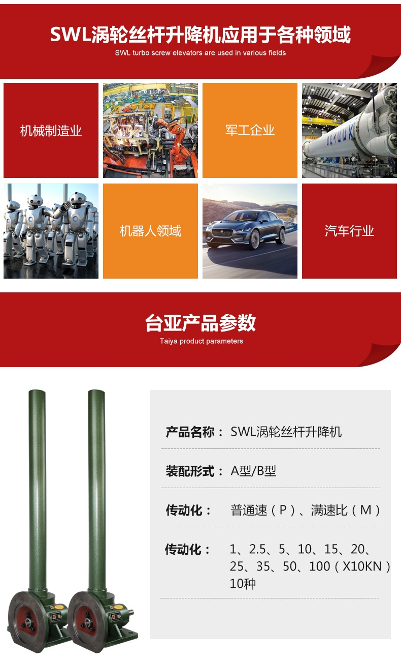 台亚直销SWL蜗轮丝杆升降机,可定制熔喷布专用升降机