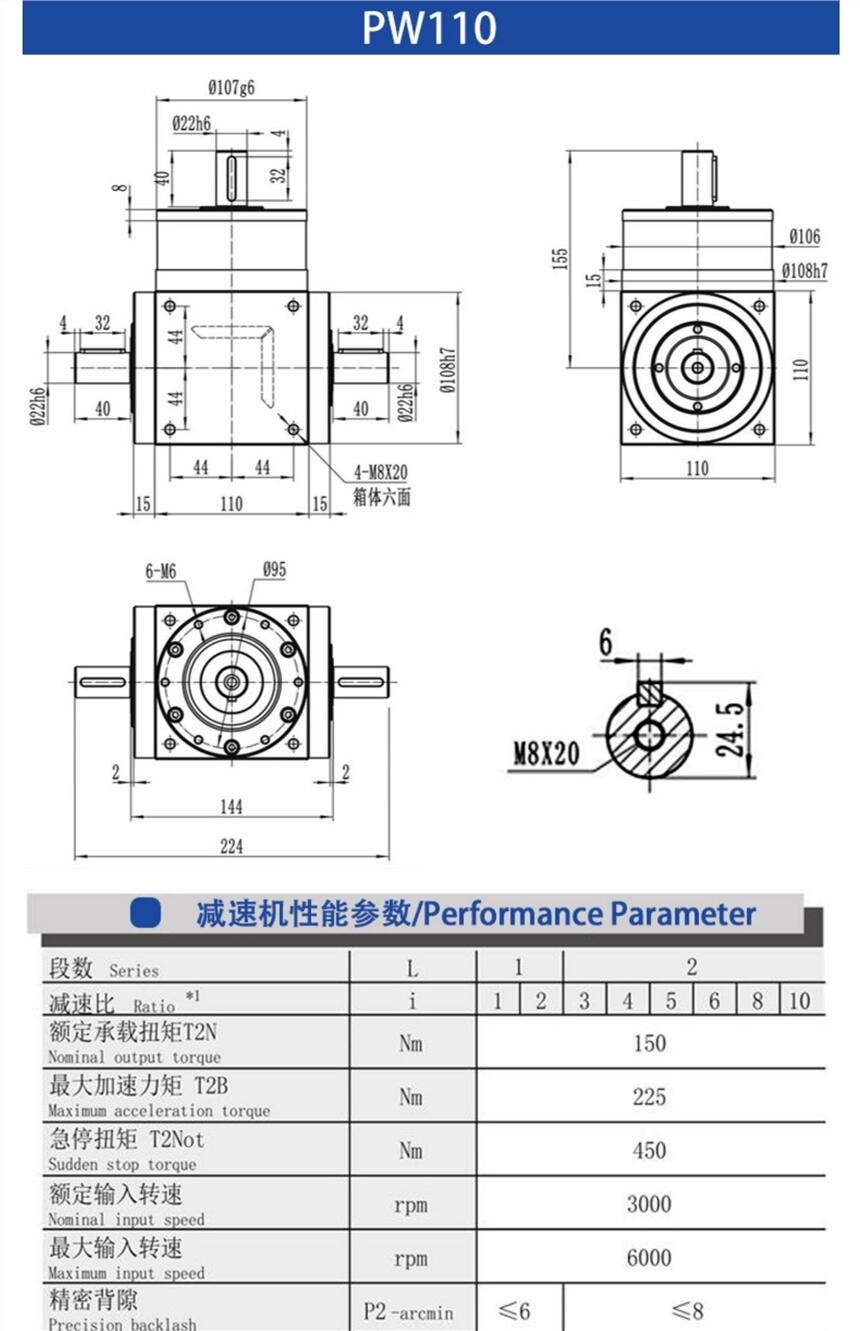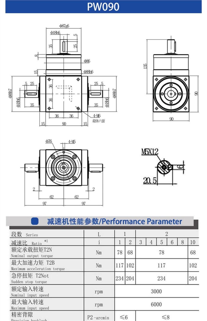 精密直角90度转换向器单双轴孔输出伺服行星减速机PW065/075/090