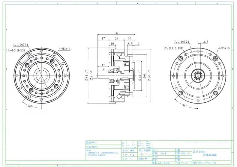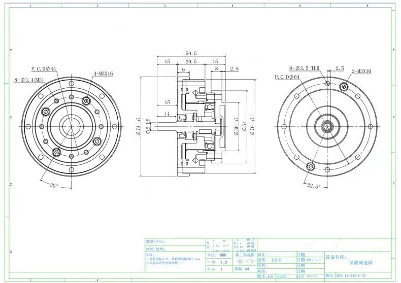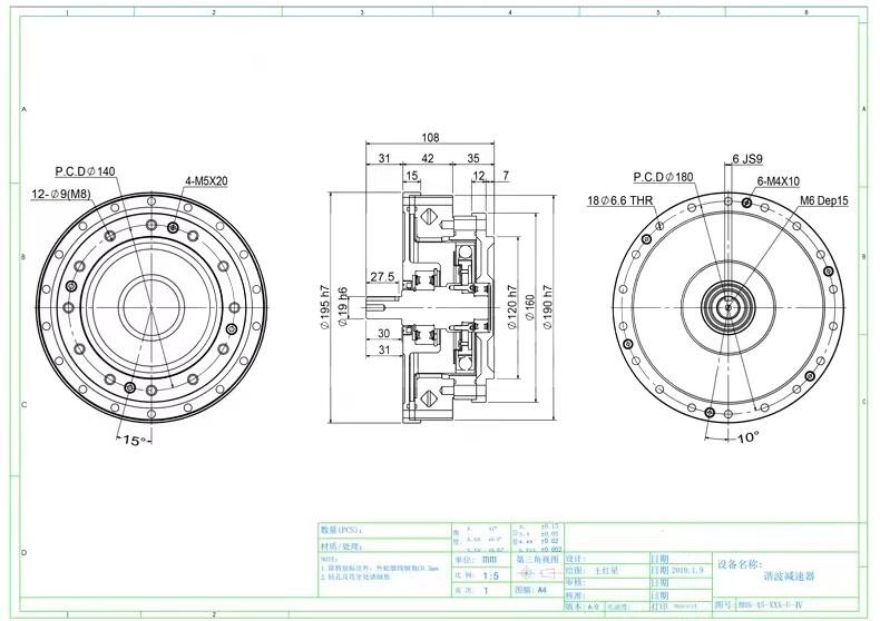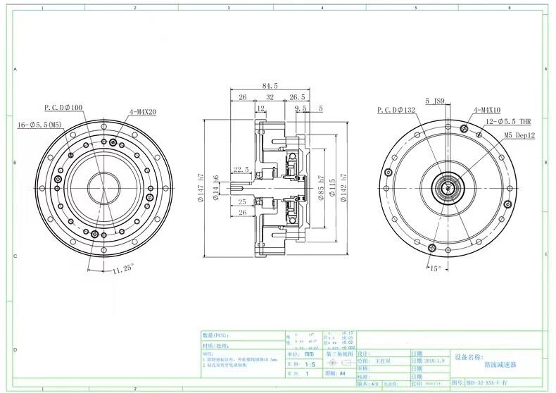 谐波减速器带单出轴实心轴BHS14-17-20-25-32-40-IV机械人减速机