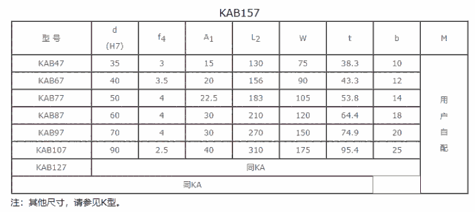 KAB47、KAB67、KAB77、KAB87、KAB97、KAB107、KAB127、KAB157系列安装尺寸: