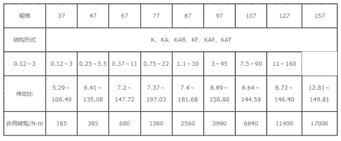 K系列螺旋锥齿轮减速机输入功率与输出转矩: