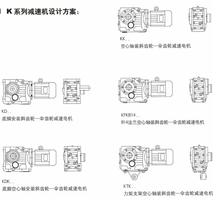 KDK127伞齿轮减速机为垂直结构,高速级为螺旋锥齿,电机直联,根据各减速比,可配套各种规格的动 机力源,适用于输入与输出部分垂直布置的场合,结构紧凑,传动比型号多,分级细雨,可适用于各种工作环境。