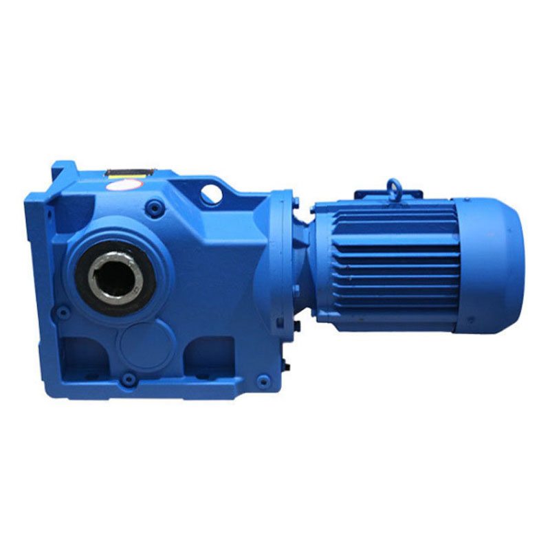 KDK127齿轮减速电机采用电机直联形式,结构为一级斜齿轮加一级伞齿轮。输出为轴装式,具有六种基本安装形式。可正反转运转,斜齿轮采用硬齿面,运转平稳,承载能力大,工作环境温度-10℃~40℃,该产品与同类产品比具有速度变化范围大,结构紧凑,安装方便等特点。可广泛用于冶金、矿山、起重、轻工、化工、运输、建筑等各种机械设备的减速机构。齿轮采用合金钢,经渗碳,淬火,磨齿加工,保障齿面精度和硬度高,产品可靠耐用,承受过载能力高,振动小,噪音低,节能高,选用优质锻钢材料,钢性铸铁箱体。