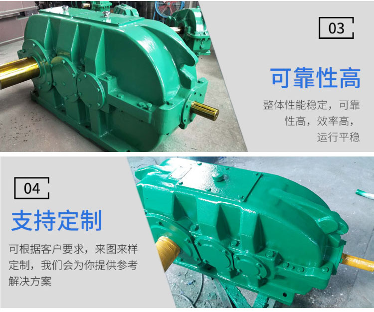 泰兴昌泰减速机大批量供应DCY系列硬齿面输送机减速机,垂直结构,三级传动,型号全,规格多,均现货供应,箱体分为上下两部分,标准为HT200铸造箱体,此减速机负载大,强度要求高,批量使用多,内部齿轮齿轴采用优质低碳合金钢,渗碳淬火磨齿加工处理,齿边角进行修缘处理,每级齿轮的综合传动效率达0。98,振动和噪声***降低。适用于起重机各运行机构中,承载能力大,体积小,重量轻,多级数,拉开中心距,降低减速器整机高度,满足输送机各机构的要求。