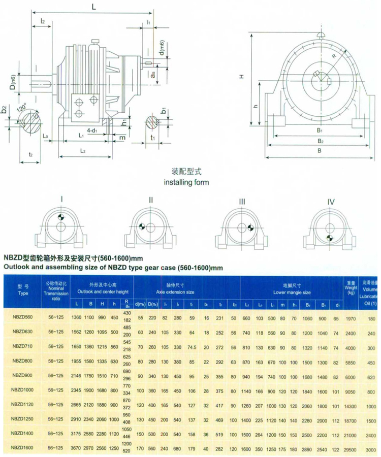 NBZD630行星齿轮减速机相较于NBD行星减速机,传动比更大,且输入端布置位置更灵活,可在输出端四周布置,常用于各类煤炭,矿山绞车,输送,传送等设备中,承载能力大,输出转矩大,使用寿命长。