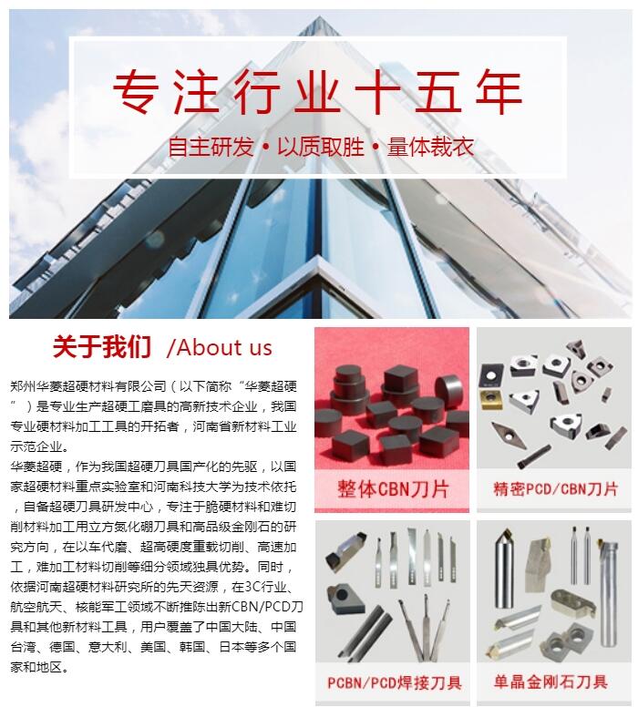 (1)碳纤维复合材料(CFRP)和蜂窝材料(HONEYCOMB)专用金刚石PCD铣刀。华菱超硬PCD铣刀,具有超高硬度和超耐磨性,性能稳定,使用寿命长,可获得较高的表面光洁度。除焊接PCD切削刃的PCD铣刀外,还供应有金刚石涂层铣刀,满足蜂窝复合材料铣削加工的应用需求。