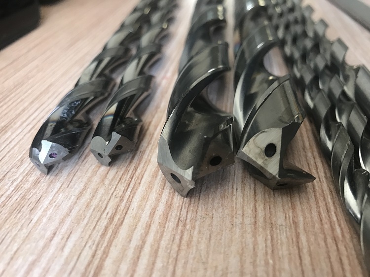 ??数控内冷麻花钻头,CNC内冷麻花钻头,内冷CNC钻头,钨钢内冷钻头公司,通过特种加工工艺,生产中心出水内冷却孔麻花钻头,钻头加工工件时由机床刀柄排水给钻头的中心内孔冷却,内冷钻头长度可按客户要求定制。锐者工具的内冷钻头,从柄部到切削刃有1个直孔或者两个螺旋交叉的孔,使压缩空气、油或切削液穿过,起到冷却刀具和工件,并冲走切屑,降低刀具的切削温度,增加刀具的使用寿命;特别适合用于深孔高速加工.机床上配上带内冷的主轴或者另外配上油路转换刀柄并可以实现内冷加工,这种钻头采用细颗粒硬质合金材料及含钴、含铝的粉末冶金高速钢材料制造,为延长使用寿命,还进行了物理涂层处理,更增加钻头的耐用度和加工尺寸的稳定,因此该内冷钻头比普通硬质合金钻头更具有优良的切削加工性能,特别适合用于深孔加工以及难加工材料并减少钻头高速加工时的高热带来的对钻头和产品外观的损伤,给您带来高速高效的钻削加工;专门设计的几何刃型使钻头具有自定心功能,在钻削大多数工件材料时具备良好的切屑控制及排屑性能,可确保孔的钻削质量,钻削后不需再进行后续精加工。加工出的孔表面光洁度好,尺寸精度和定位精度都很高。可用于加工中心、CNC车床或其它高刚性、高转速机床。锐者工具可根据客户需求定制各种内冷钻头