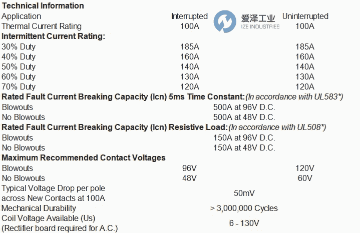 ALBRIGHT接触器SU60P系列SU60-2013P技术参数及介绍