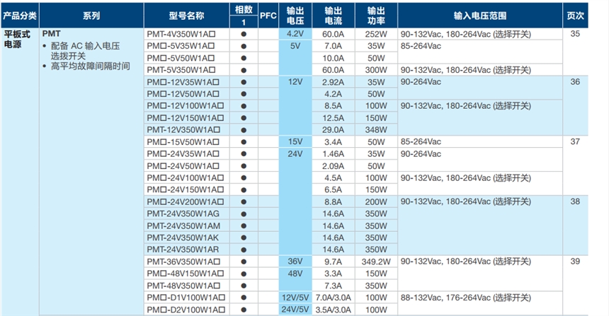 PMT-12V50W1AA, PMT-12V100W1AA,PMT-12V100W1AG,PMT-12V150W1AA, PMT-12V150W1AH,PMT-24V35W1AA,PMT-24V50W1AA, PMT-24V100W1AA,PMT-24V100W1AG,PMT-24V150W1AA, PMB-24V150W1AA,PMB-24V150W1AG,PMT-24V350W1AG, PMT-24V350W1AK,PMT-4.2V350W1AM,PMT-5V350W1AM,