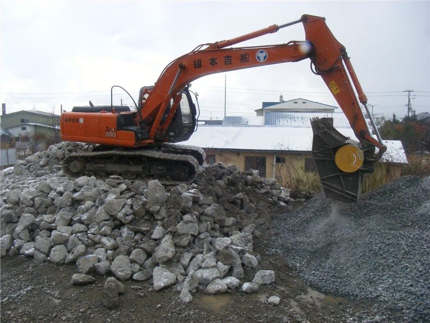 挖掘机破碎斗可快速破碎矿山石、预制板及混凝土钢梁,迅速分离混凝土、钢筋,省时省力,还可节省资源废物利用,一举多得。对应各种挖掘机机型(8~50吨)的混凝土石料回收再利用的更新碎料破碎斗颚式破碎斗,可以减少工程现场混凝土块的搬运,购买碎石产生的运输等工程成本。另外,该产品还可减少由于车辆运输导致的交通堵塞,交通事故,降低城市噪音,道路维护成本,以及减少二氧化碳排放等,促使混凝土废料在工地现场内直接回收再利用。