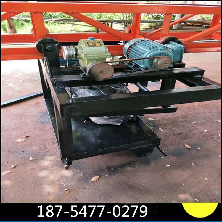本机由桁架、工作小车、刻纹装置、牵引、行走、供水、电器控制等部分组成,如结构示意图所示。桁架上设有空间位置可以调整的导轨 调整螺栓 可使左右导轨相互平行且与地面平行,工作小车通过悬挂轮 悬挂在导轨上,保证刻纹的直线度、深度。