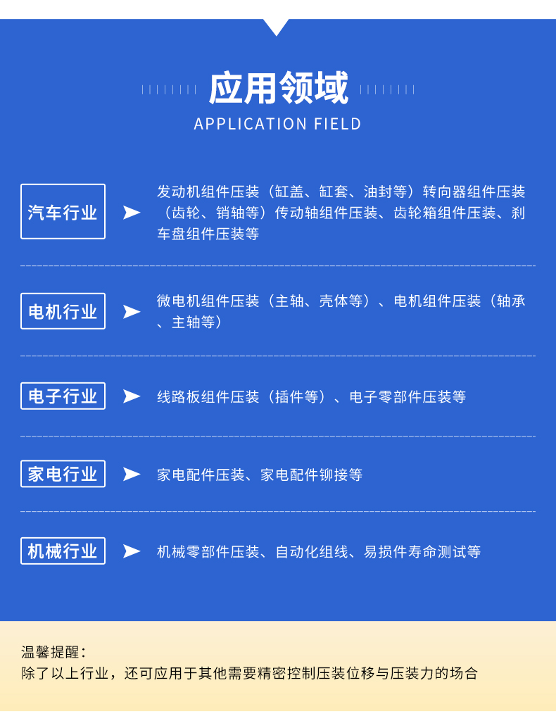 用途范围 | 实施压力装配作业 | ||