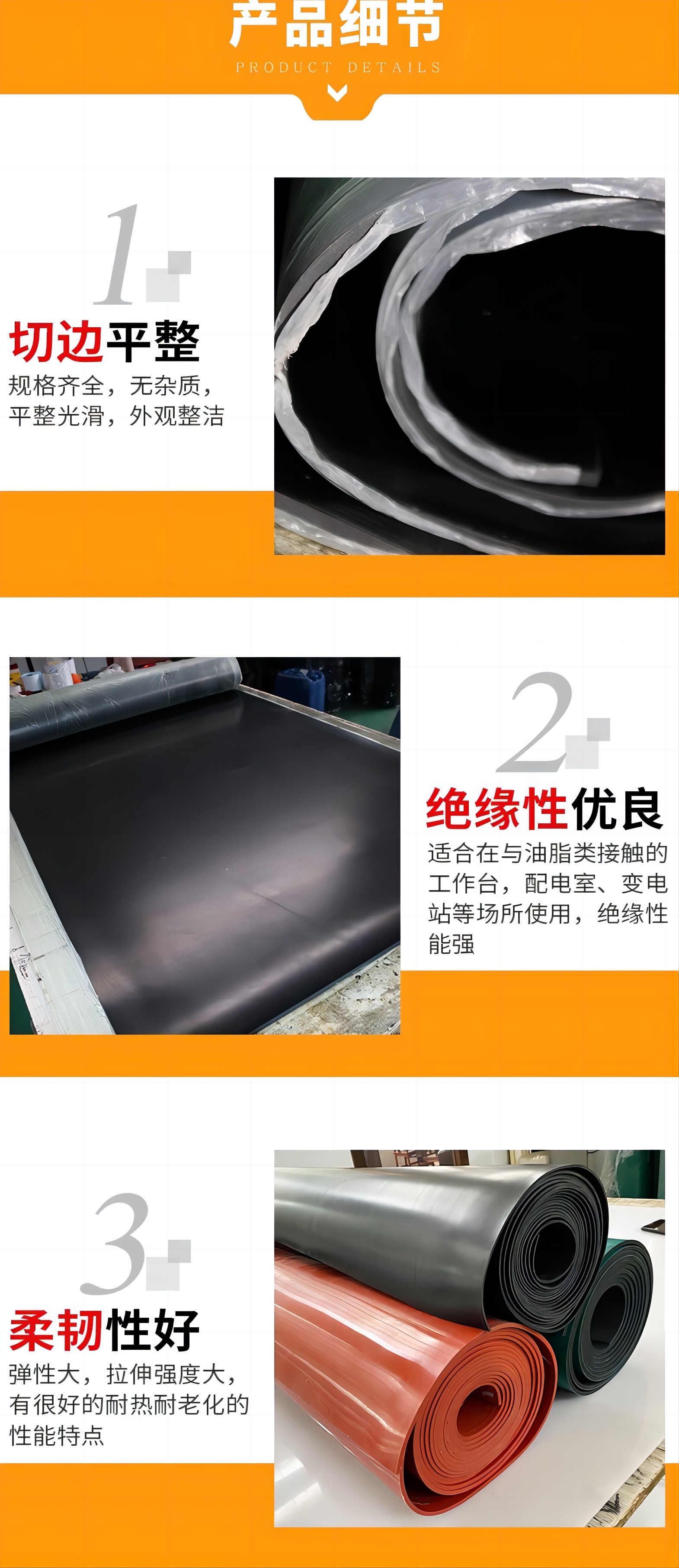 黑色减震橡胶板10kv胶皮柯航5mm密封绝缘垫红色地胶