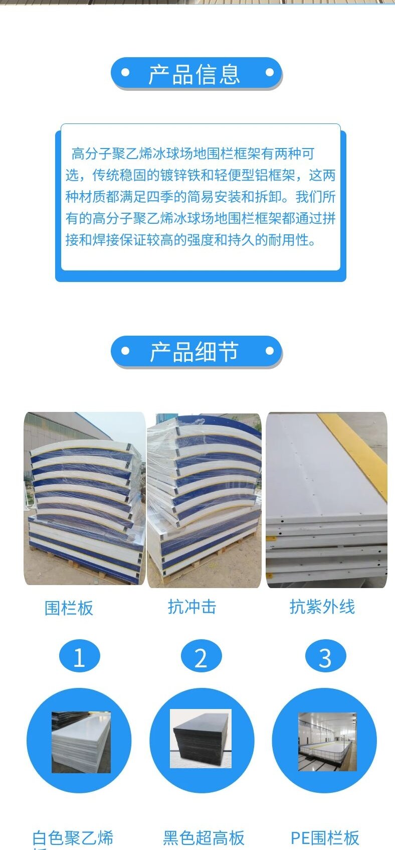 津鸿橡塑可拆卸的冰球场围栏板UHMWPE界墙可定制高度、厚度和管材