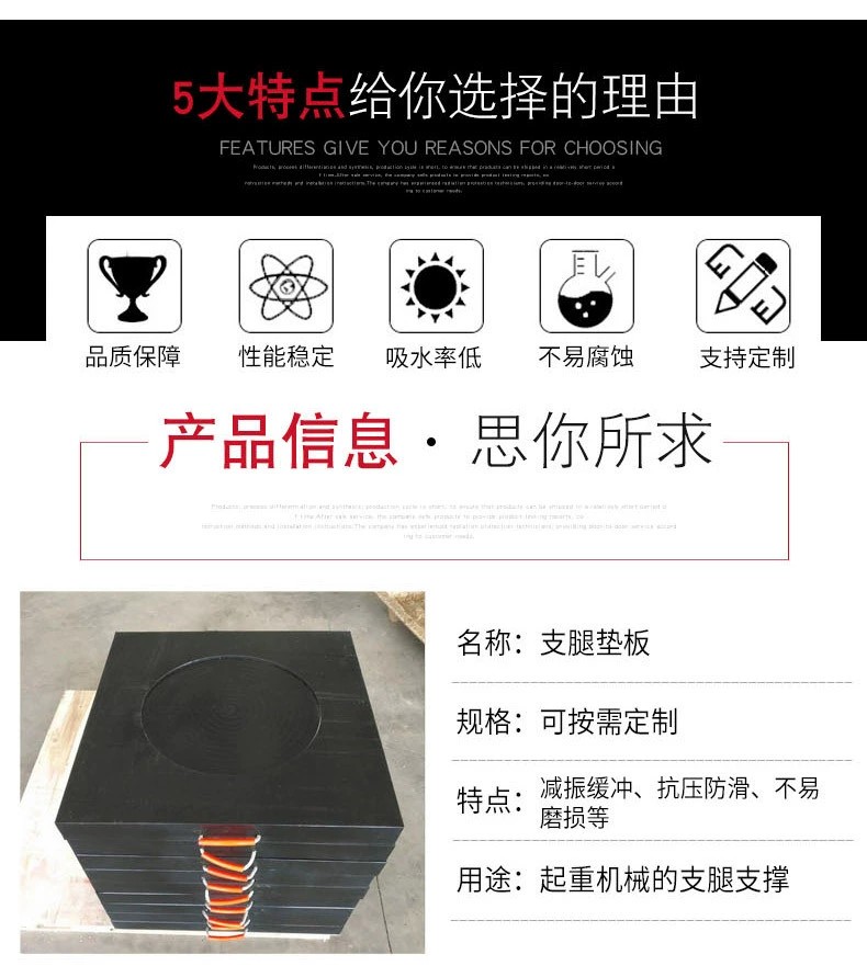 津鸿起重机聚乙烯支腿垫板可承重几十吨不变形泵车UHMWPE支腿垫块