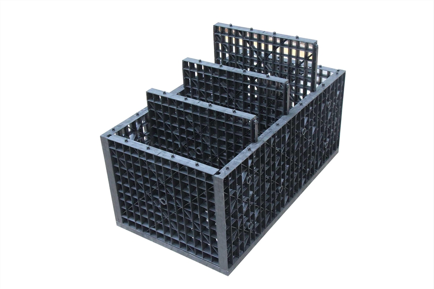 雨水收集模块是雨水收集利用系统中的一部分,若干个雨水收集模块单元组合起来,形成一个地下贮水池。在水池周围根据工程需要包裹防渗土工布或透水土工布,组成贮水池、渗透池、调洪池不同类型。用雨水收集模块组装水池,安装方便,承载力大,不滋生蚊蝇及藻类,且在临建地区域使用后,可以拆除迁移到其它区域继续使用。该设备适用于大型建筑小区、工业园区、广场及厂房区域的雨水收集利用。雨水收集模块贮水池能有效的将收集来的雨水进行存储,这些存储的与水资源,经过处理后可用于冲洗厕所、清洗路面、浇灌草坪、水景补水,甚至用于循环冷却水和消防水。