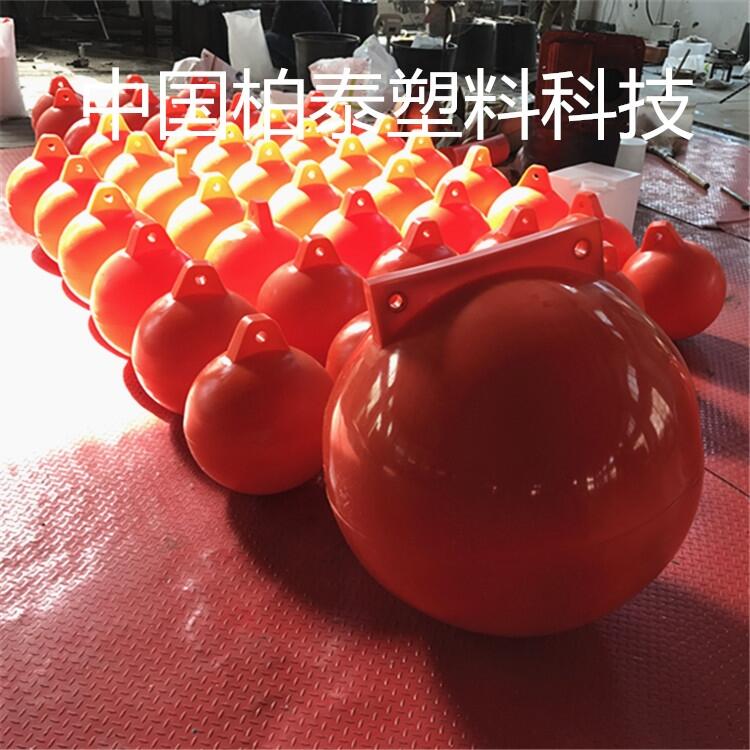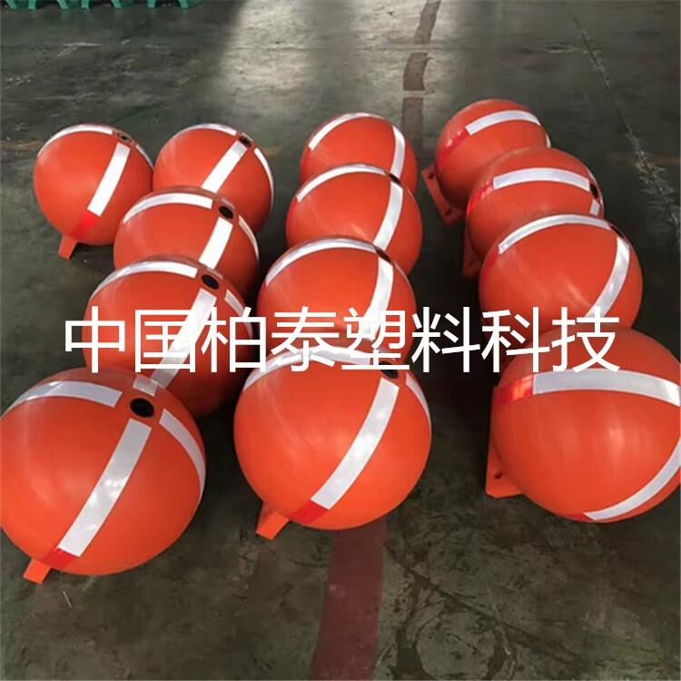 海上示塑料浮球水上浮球生产厂家外壳由韧性优异的中密度聚乙烯制成,内充高强度聚氨酯或泡沫塑料,结构合理,惯性小、使用寿命高达20年、性能优异。单个浮球可提供90kg的浮力。颜色大小可随意定制。