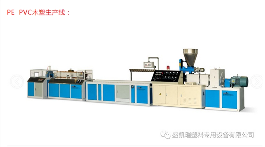 该生产线能生产PE、PP、PVC等木塑异型材制品,主要用于地板、托盘、橱柜、包装箱板等户外室内装饰材料,用途十分广泛。木粉及植物纤维添加量(可达65%左右)。