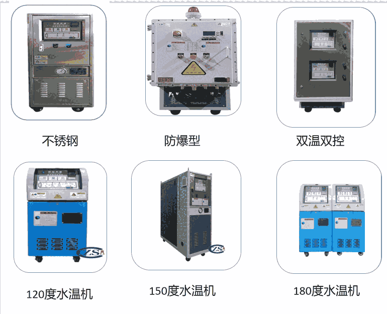 水温机控制温度可以达到180℃, 以水为循环介质,对环境没有污染,如果客户工艺有冷却要求,可采用直接冷却方式,降温速度快,使用方便,保养维护简单。用于模具的加热、恒温控制或其他同样需求的工业领域。其工作原理是:高温循环水从应用设备(模具)出来后进入水循环温度控制机,设备根据设定的温度对循环水进行加热或冷却,并由循环泵浦输送到应用设备(模具)的管道入口,由此达到恒温控制。