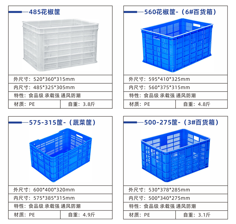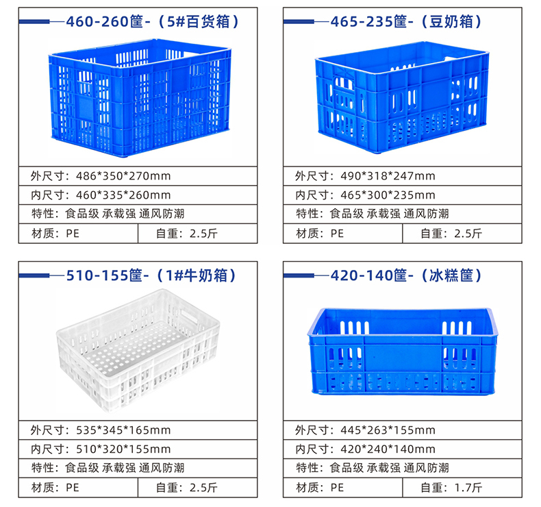 周转筐,超强耐磨抗冲击,广泛适用于食品,饮料,啤酒,医药,纺织,汽车制造,电子电器,五金机械,物流运输等行业