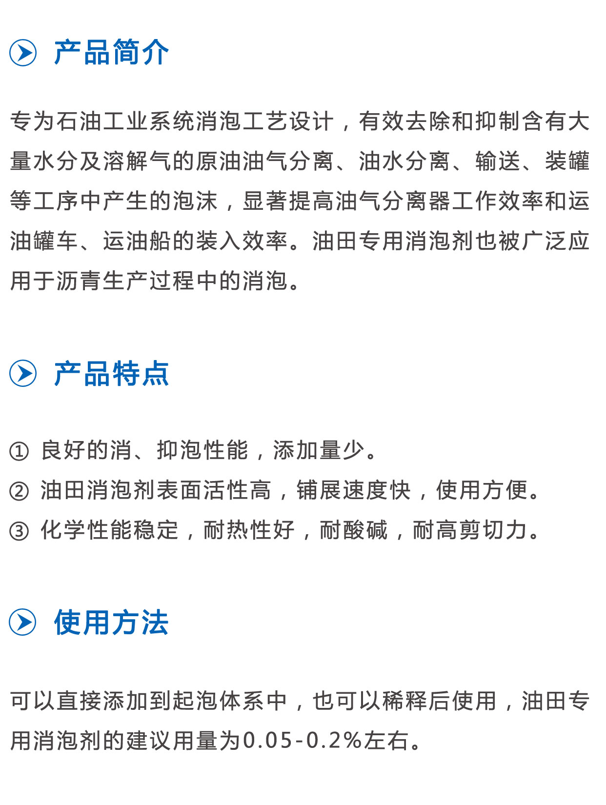 作用 | 有效预防泡沫冲出塔顶或使油气管线结焦堵死现象发生 | ||