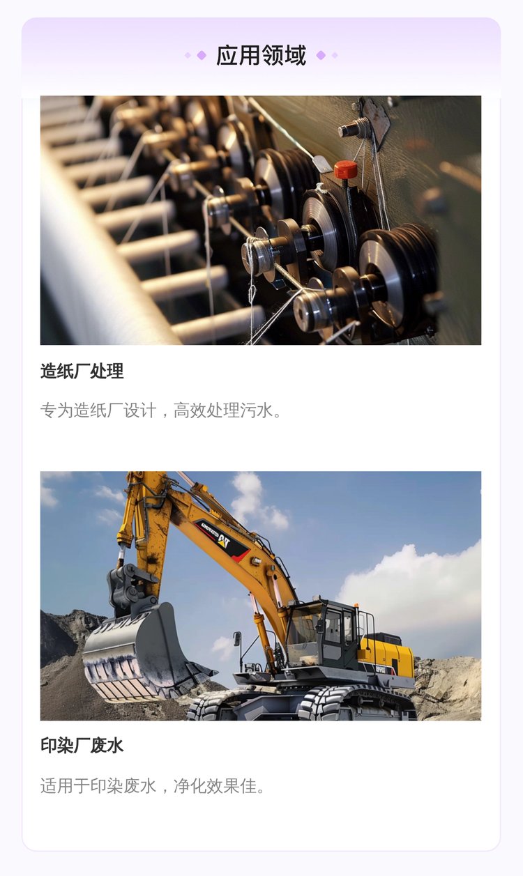 用途范围 | 造纸厂污水处理、印染废水处理 | ||