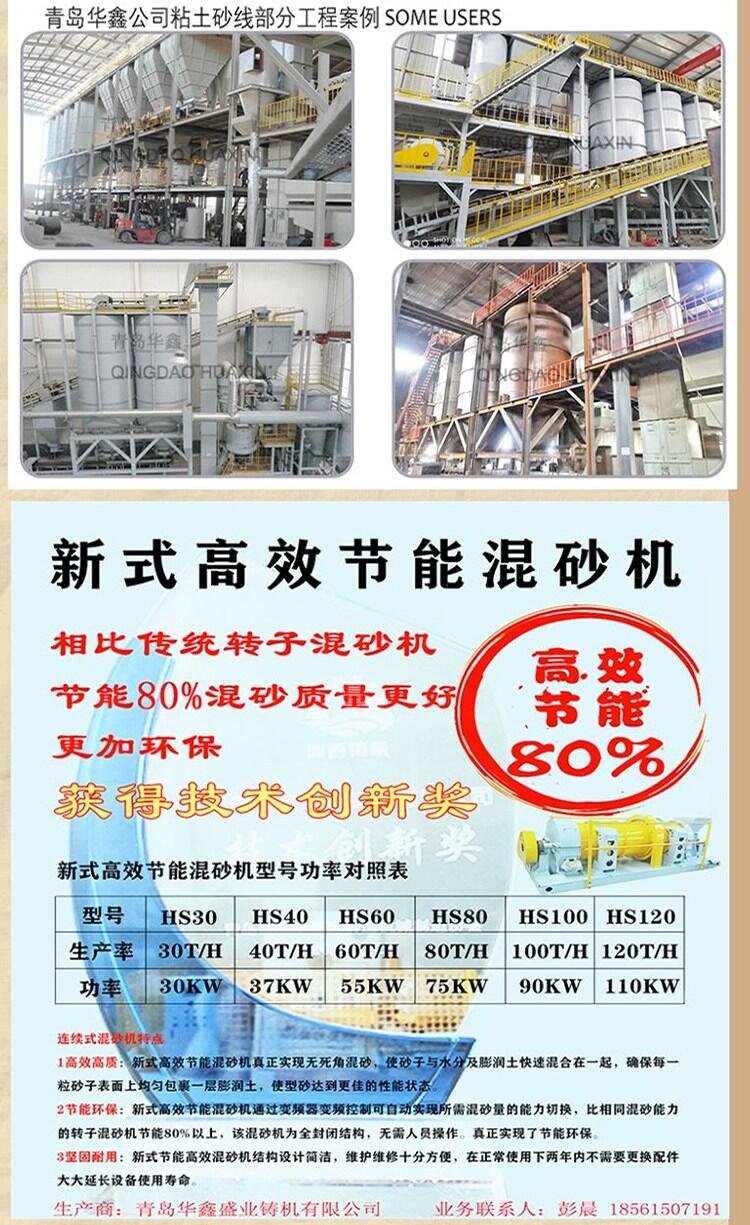 qingdaohuaxin green sand treatment system consists of used sand treatment (crushing, magnetic separation, screening, drying, cooling and regeneration), storage and transportation system; New sand treatment (drying and sieving), storage and transportation system; Storage and transportation system of attachments; Molding sand mixing (including quantitative addition of various materials) and conveying system; On-line monitoring and control system of molding sand quality; Mechanized electrical interlocking control system for transportation, etc.