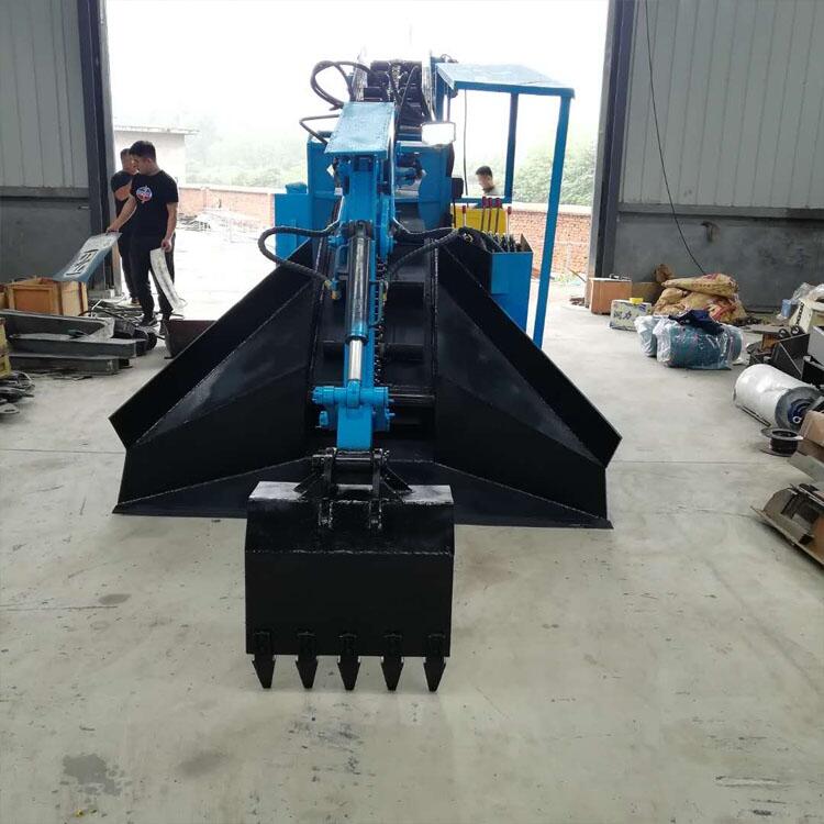 全液压履带式巷道扒装机,采用高品质变速箱及马达驱动底盘,扒装臂采用多路阀式控制,因此铲装.扒装有力,操作灵活方便.动力可使用电动机或柴油机,也可做成双动力形式.后部卸料部分高度可任意调整,并可折叠,进出巷道更加方便。输送方式分皮带输送机及刮板式输送。大臂分伸缩臂及挖掘臂两种。广泛适用于铅锌矿、铁矿及水电施工隧道中.因其效率高,便于维修而被广泛采用.