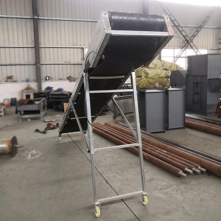 新款粮食装车神器主要由机架、输送带、托辊、支架、驱动装置等部分组成。机架由优质碳钢制作而成,承载能力强,久经耐用;输送带为工业斗提机专用提升带,多层帆线,拉力更强更耐用;上面配有防滑条;支架可以升降高度,满足不同场合使用;驱动装置采用工业用减速电机,铜线,扭矩更大,更耐用。