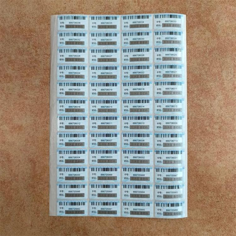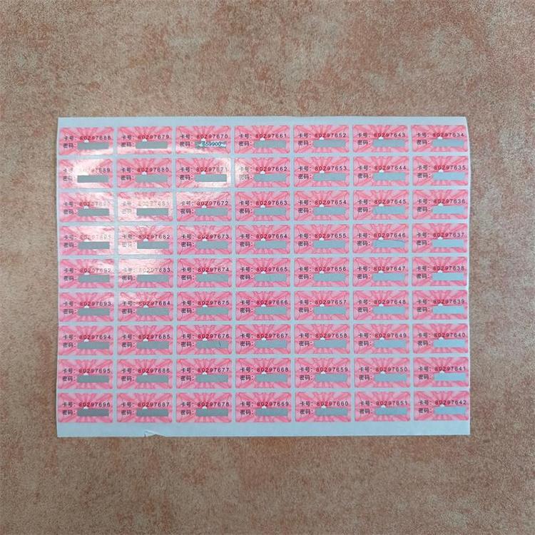 5.我公司印刷出来的卡号密码贴纸的特点:不缺号/不断号/密码区的密码反面照射看不到 ;