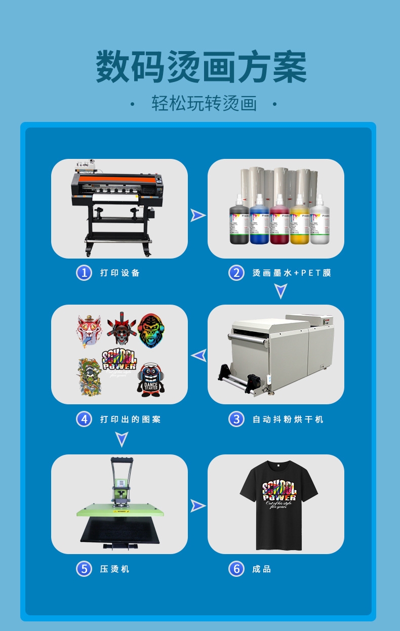 白墨烫画服装印花是具有互联网特征的,通过智能化自动化机器化将人工干预降到极低,为服装印花企业节省更多的人工成本。白墨烫画打印机按需给墨的生产方式可以大幅度的降低污染排放,终达到零排废的优势。白墨烫画是用机器设备代替人工,全程由智能化设备完成,使烫画工艺更加精美。