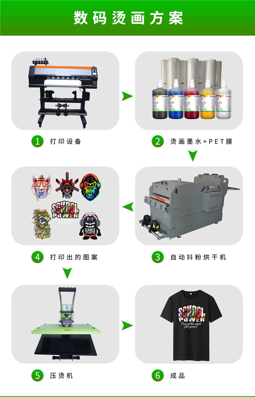 什么是白墨烫画?白墨烫画是一个可以直接将图案印染在服饰上面的印刷机。打印机可一人操作多台设备,无需起订量要求实现一个起订,打样和大货速度快,成本低,颜色鲜艳,牢度达到水洗3级以上,彻底颠覆传统各种印花的繁琐工序。白墨直喷烫画可以轻松达到照片级效果,做烫画时只要提供清晰的高清图片文件,做出来都能达到照片级效果。