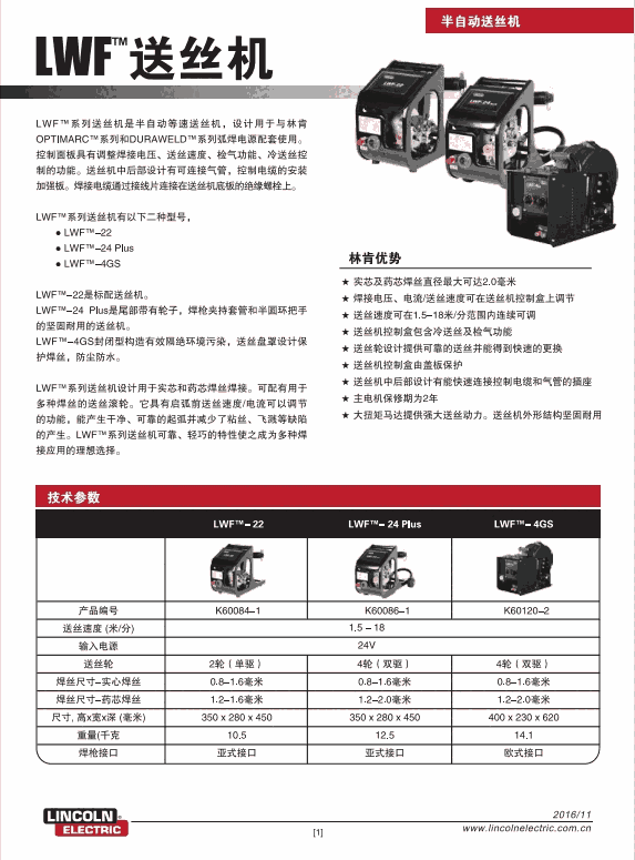 • 实芯及药芯焊丝直径最大可达2.0毫米