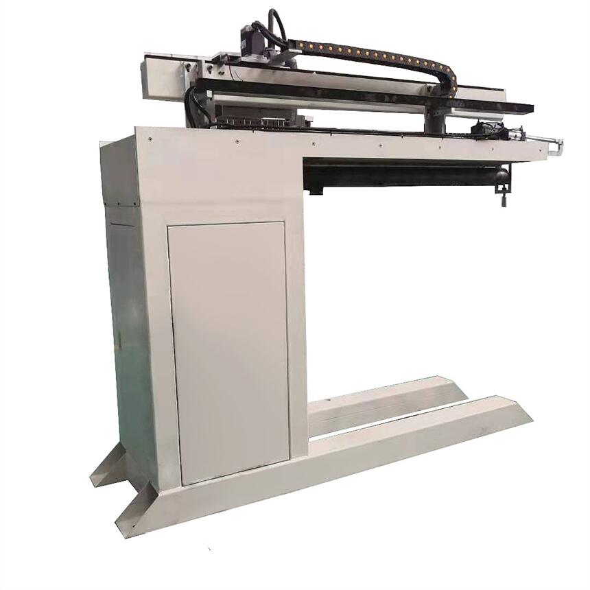 2.、采用悬臂式单立柱结构,主要由床身、气动琴键式压板夹具、横梁导轨、芯轴、电动拖板、焊枪气动升降机构、焊枪三维调节机构、气路系统和电气控制系统等组成。