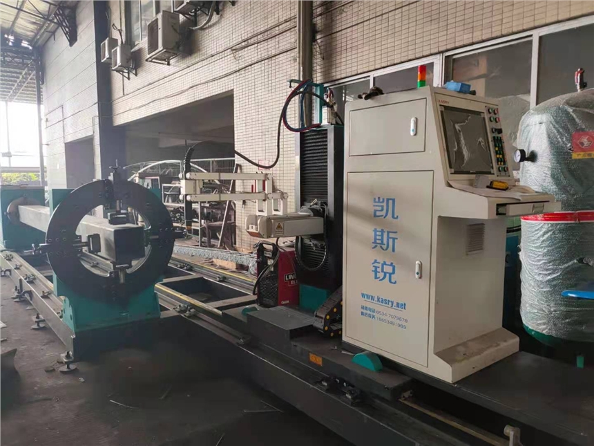 异型管相贯线切割机 方圆管切割一体机采用圆柱坐标系数控,控制轴数为八轴。具有中英文界面、参数输入和人机对话功能,定角度坡口面切割功能,变角度坡口面切割功能,管道不圆度和偏心补偿功能,在线和离线自动点火、预热、穿孔功能,切割速度变化自动控制功能等。