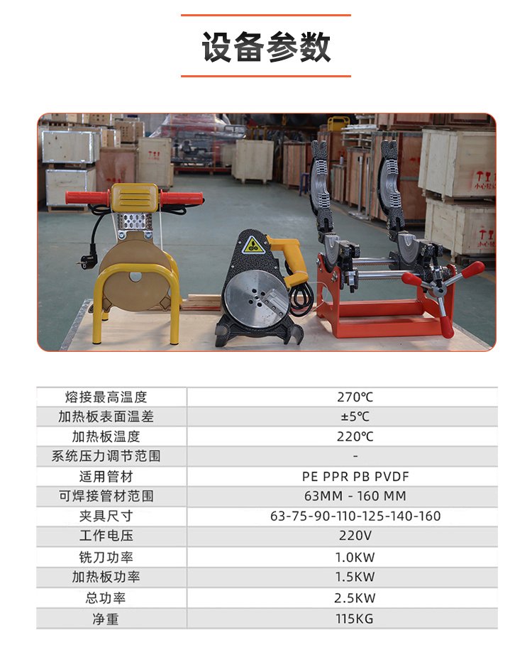 可焊接管材范围:63mm-160mm