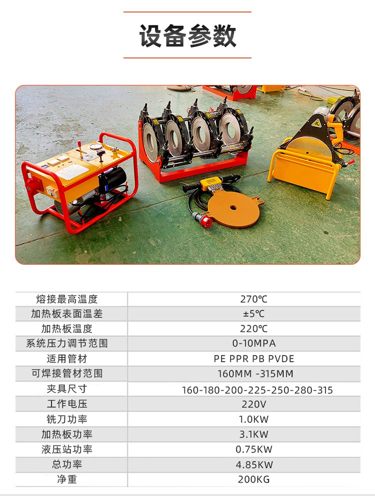 液压热熔机250mm-110mm小口径对焊机燃气管半自动热熔焊机天然气管工程对接机