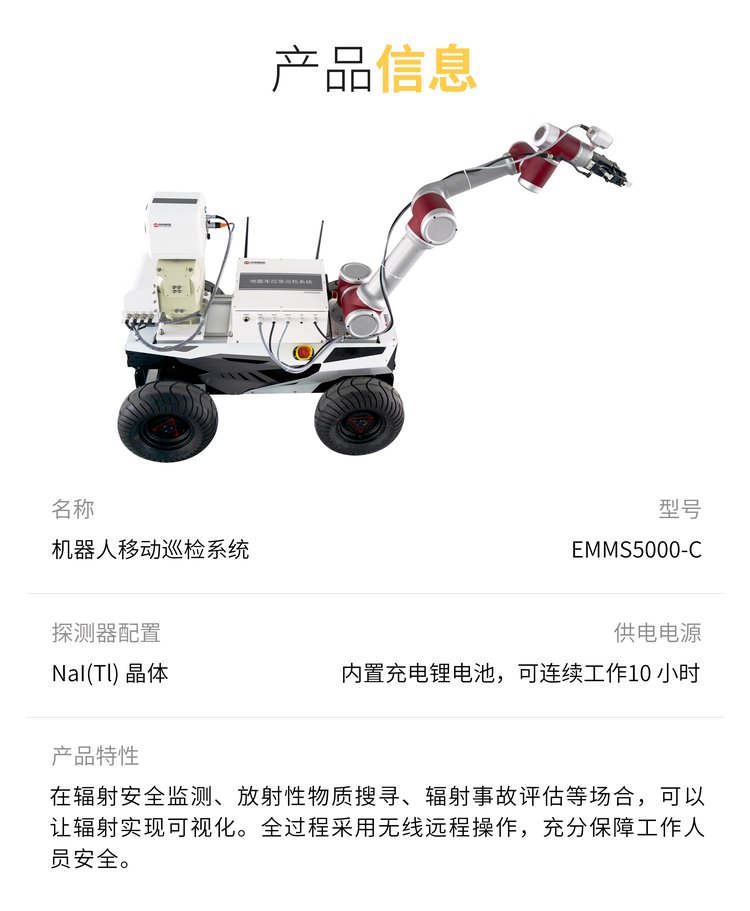 用途 | 核素识别、持巡检路线规划、实现全方位多角度的精准成像。 | ||