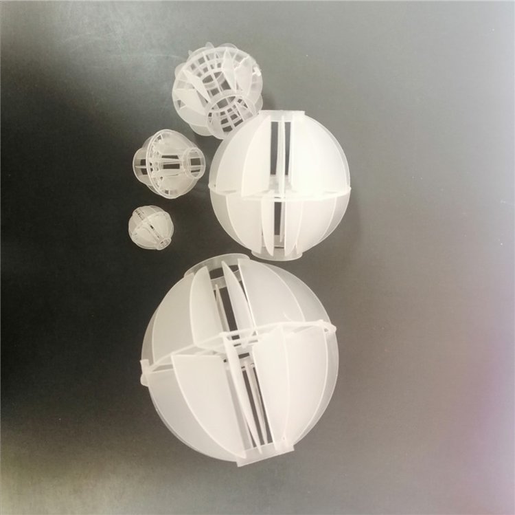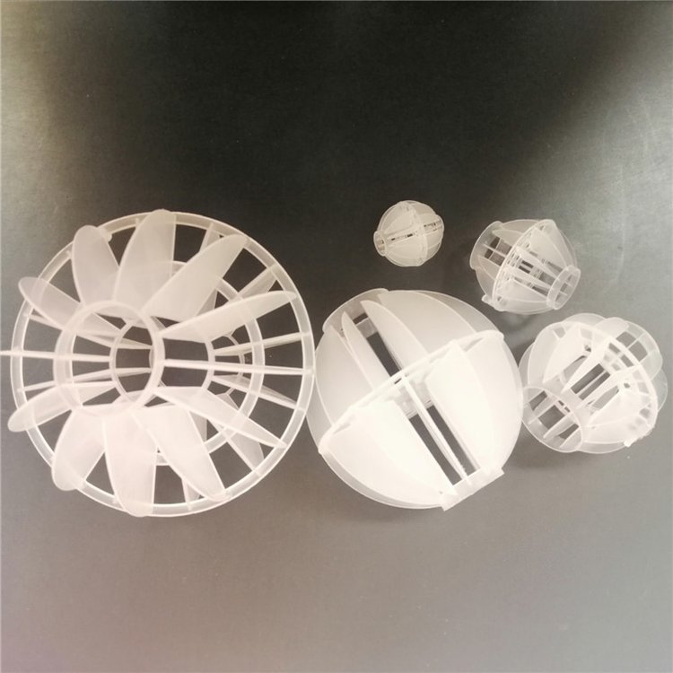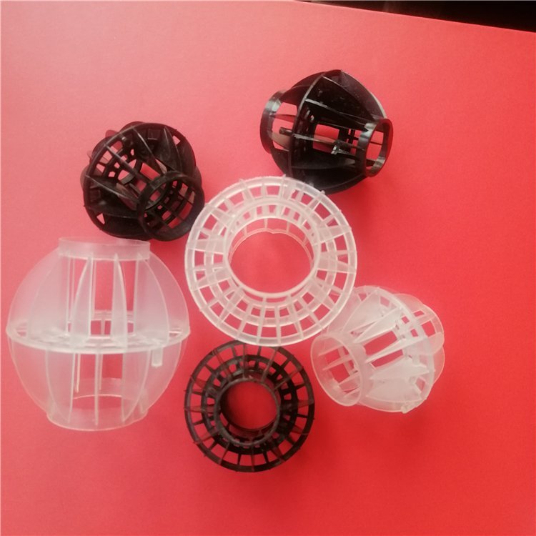 多面空心球填料具有重量轻、耐热、耐化学腐蚀等特点,包括PP、PE、RPP、PVC、CPVC、PVDF等材料制成的塔填料,塑料填料具有空隙率大、压降和传质单元度低、泛点、汽液接触充分、传质效率等特点。在各种介质中的使用温度为60-280℃,塑料填料广泛用于石油、化工 碱、煤气、等待业的填料塔中。塑料填料分为塑料散堆填料(多面空心球、花环、环、阶梯环、鲍尔环、矩鞍环、异鞍环、共轭环、扁环、拉西环、雪花环、六棱形环、旋转环、五角环、锥形环、网环、十字球形环、浮球、液面覆盖球、菱形覆盖球等)和塑料规整填料。