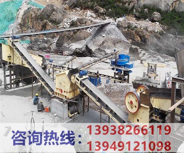 砂石线通常由振动给料机、颚式破碎机、直通冲击式破碎机(制砂机)、振动筛、洗砂机、胶带输送机、集中电控等设备组成。石料由振动给料机均匀地送到颚式破碎机进行粗破,粗破后的物料由胶带输送机送入到制砂机进行进一步破碎,细碎后的物料被输送到振动筛进行筛分,达到成品粒度要求的物料被送入洗砂机清洗,清洗后由成品输送带输出即为成品;未达到成品粒度要求的物料从振动筛返回制砂机重新加工,形成闭路多次循环。成品粒度可按用户的需求进行组合和分级。如果选用干法生产工艺,可配备粗细粉分离机和除尘设备。