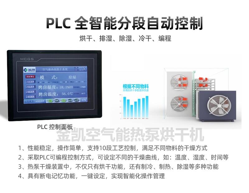 5、全自动智能控制系统:按照最合适的烘干工艺曲线,自动调节温度和湿度、烘干时间。